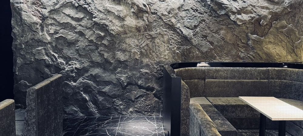 モルタル造形は、コンクリート打ち放し風・石積み風・インダストリアル・モダンなど、店舗コンセプトに合わせた空間演出が可能です。ロゴや照明、家具との相性も良く、写真映えする内装をつくれます。